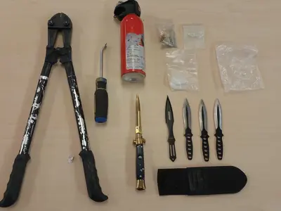 A 31-year-old individual of Kingston was charged with theft under $5000, possession of break in instruments, possession of weapons dangerous to the public peace, possession of a prohibited weapon, possession of property obtained by crime under $5000 and possession of a schedule II substance.