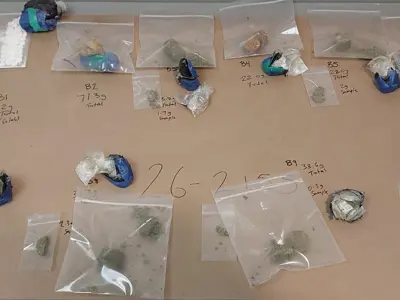 Upon searching the vehicle, the officers discovered a black sock which contained over 25 tightly wrapped packages. Attached to the sock was a piece of clear fishing line. Further search led to the discovery of a drone, multiple batteries, a hand-held remote and an after-market remote controlled 'payload' release system.