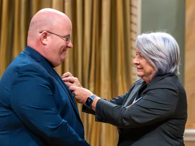 The Kingston Police are proud to recognize former Kingston Police Community Volunteer Co-Ordinator and current volunteer Sean Donohue. On Wednesday April 30, 2025, during a ceremony at Rideau Hall in Ottawa, Donohue received the Sovereign’s Medal for Volunteers. The medal recognizes the exceptional volunteer achievements of Canadians from across the country in a wide range of fields and pays tribute to the dedication and commitment of volunteers. They embody the caring country we aspire to build.