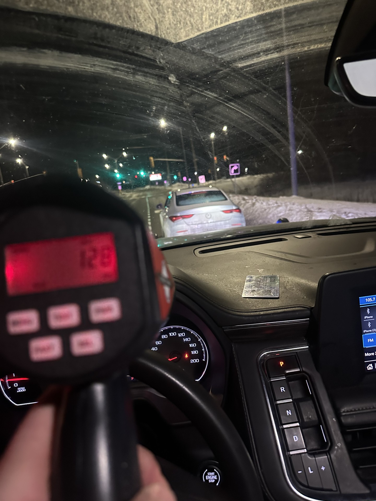 The officer was utilizing a handheld radar and determined the vehicle was travelling at 128 km/h in a posted 50km/h zone.