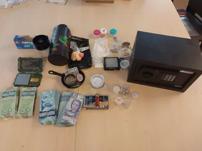 During the search, investigators seized illicit drugs with an estimated street value exceeding $41,000, along with a significant quantity of Canadian currency.